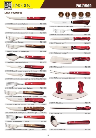 21116095 Cuchillo asado jumbo 5” marrón 12 pz         T211162  21148178 Chaira 8”                  T21148